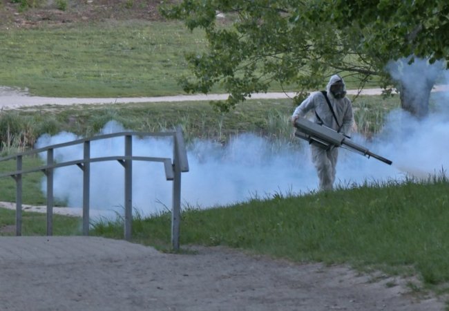 Цьогоріч техніки "Науково-практичного центру профілактичної медицини" проводили обробку парків і зон масового скупчення людей у Луцьку та на пляжі озера Світязь.