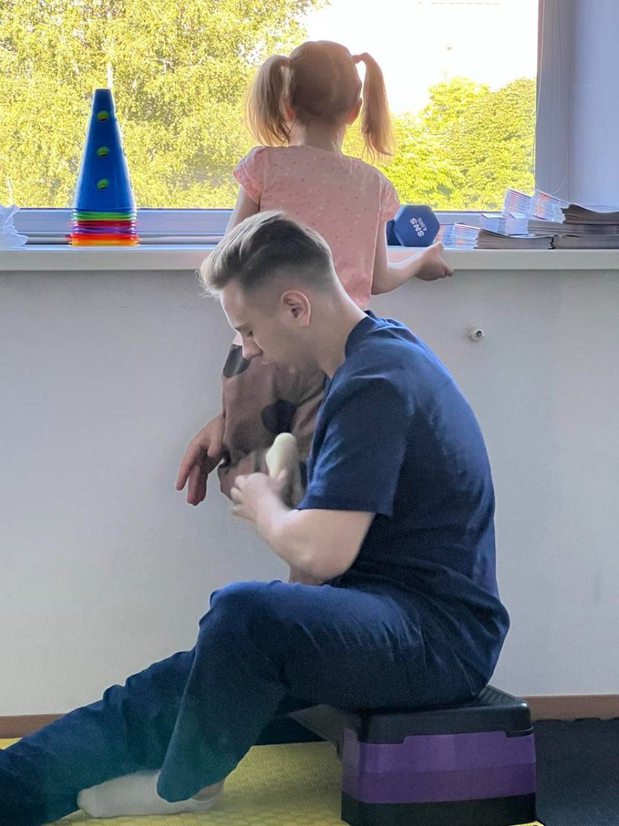 Фізичний терапевт Денис Журавлюк наголошує: справді, першим етапом реабілітації стало налагодження контакту із дівчинкою.