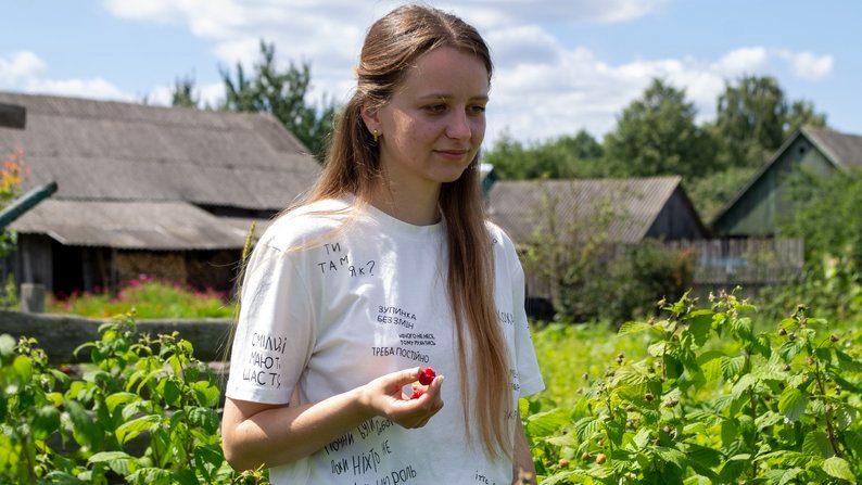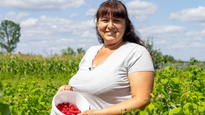 Волинянка Аліна Сахарук, родом із села Черемошне, дев’ять років проживає у Львові, але часто приїжджає до мами Світлани в гості, а влітку допомагає їй на полі збирати малину.