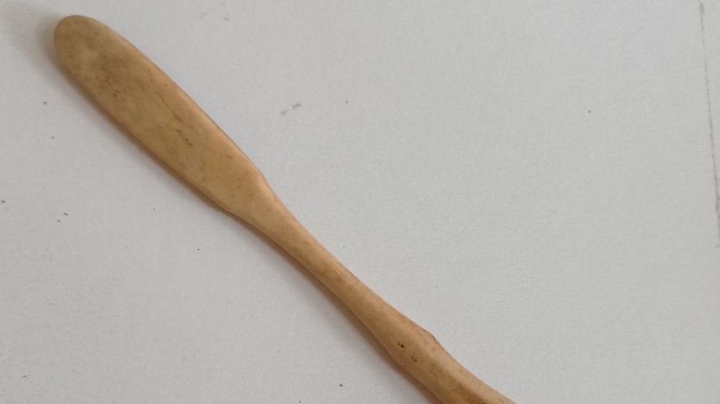 Ручка, найімовірніше, зроблена з кістки. Про це, зазначають у музеї, свідчить типове забарвлення, текстура та вигляд. До появи пластику, кістка була поширеним і доступним матеріалом для виготовлення предметів гігієни.