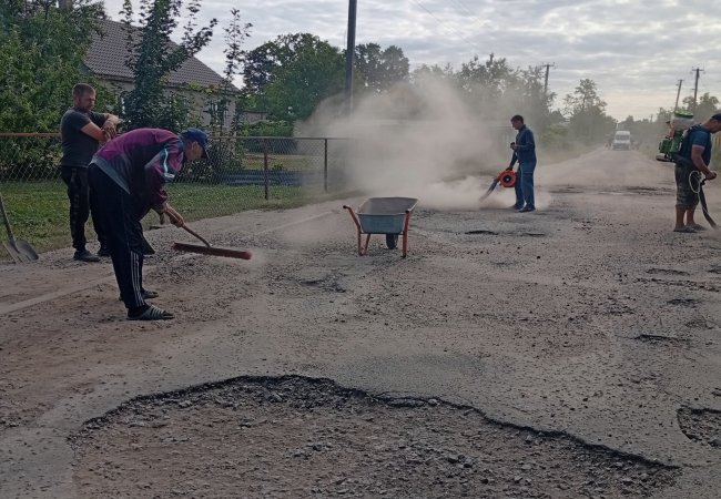В селищі Головне місцеві жителі об’єднали свої зусилля і самотужки вирішили зробити ямковий ремонт аварійної ділянки дороги комунальної власності по вулиці Незалежності, яка ще не до кінця зруйнована і щоб хоч якось зберегти покриття.
