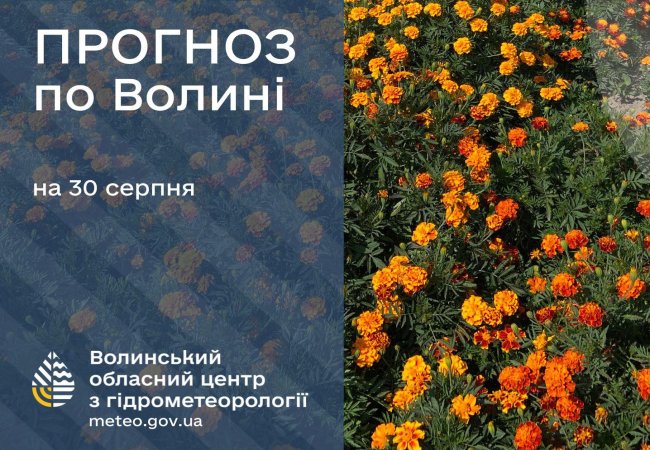 Волинський обласний центр з гідрометеорології опублікував прогноз погоди на 30 серпня.