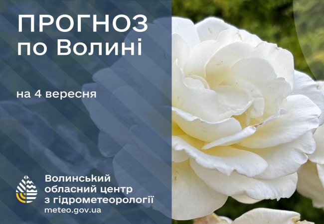 Волинський обласний центр з гідрометеорології опублікував прогноз погоди на 4 вересня.