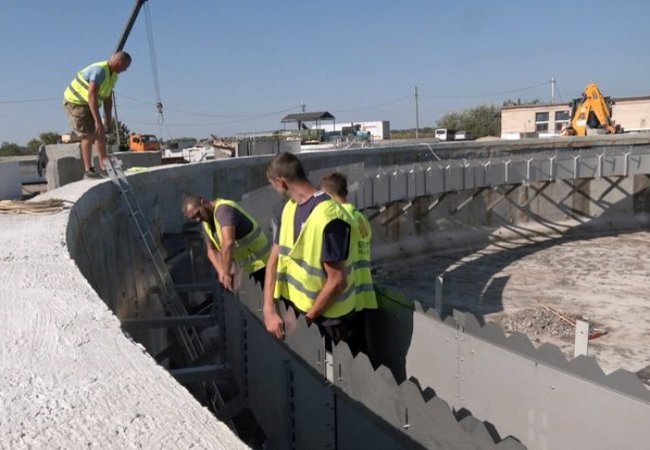 У первинному радіальному відстійнику вода буде освітлюватися, тобто очищатися, шляхом відстоювання, розповів робітник Дмитро Прилепа. Зі слів монтажника, все елементи на об'єкті працівники закріплюють переважно ручним способом.