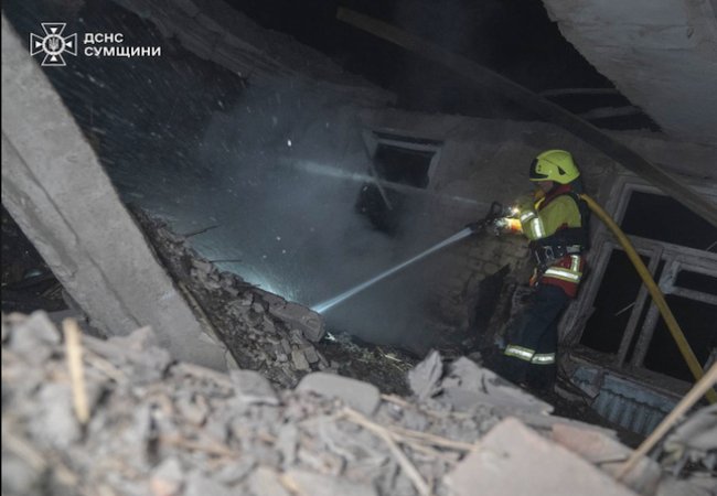 "11 вересня близько першої ночі ворожі БпЛА вдарили по території одного з навчальних закладів Сум. Значних пошкоджень та часткових руйнувань зазнали будівлі закладу, в одній із яких виникла пожежа. Рятувальники оперативно ліквідували всі осередки горіння. Місце влучання обстежено", – йдеться у повідомленні.