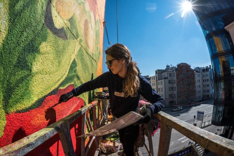 «Пам’ятаю свій перший мурал і страх висоти, про який я не розповіла на співбесіді. Бажання малювати було більшим, ніж страх», — усміхається дівчина.