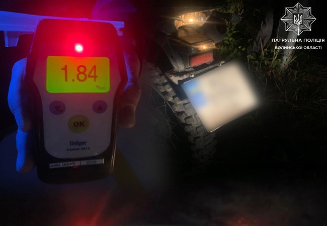 Днями, під час комендантської години, патрульні зупинили авто Citroen. У кермувальника поліцейські виявили ознаки алкогольного сп’яніння, тому запропонували пройти огляд за допомогою алкотестера Драгер. Водій погодився, результат — 1,84 проміле.