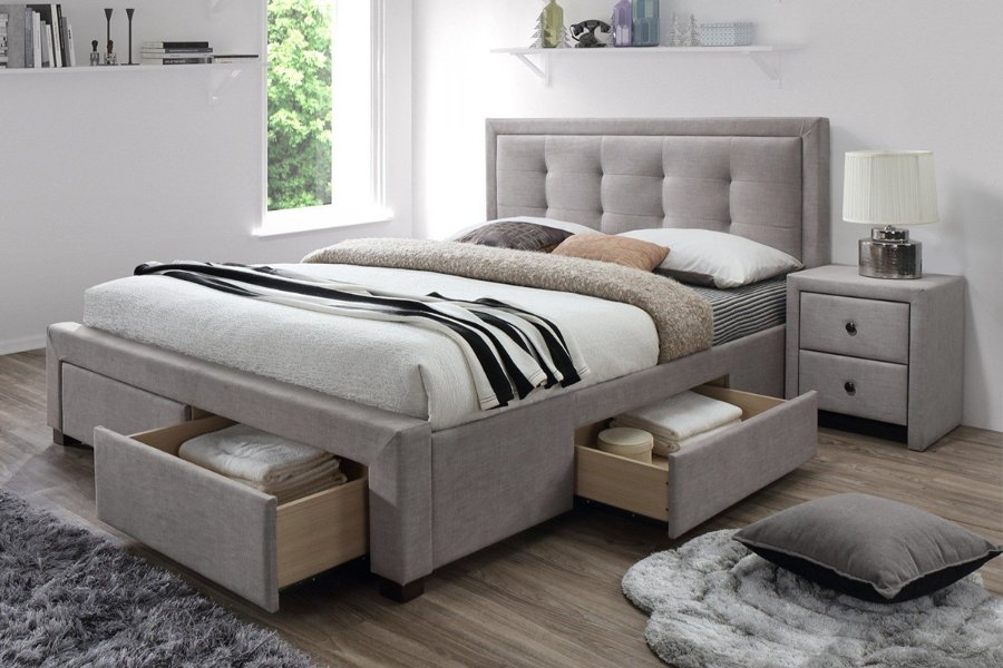 Підйомний механізм, що відкриває нішу для речей, або висувні ящики компенсують простір для зберігання, який у маленьких спальнях завжди в дефіциті.