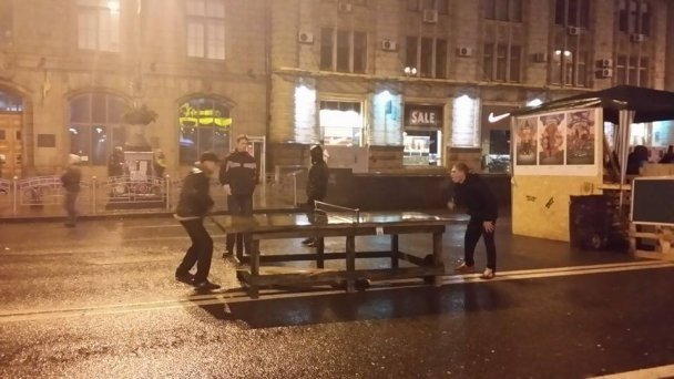 Тим часом, активісти грали у шахи та настільний теніс просто на вулиці.