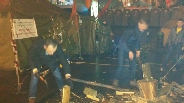 Вночі народні обранці спілкувалися із людьми та навіть рубали дрова.