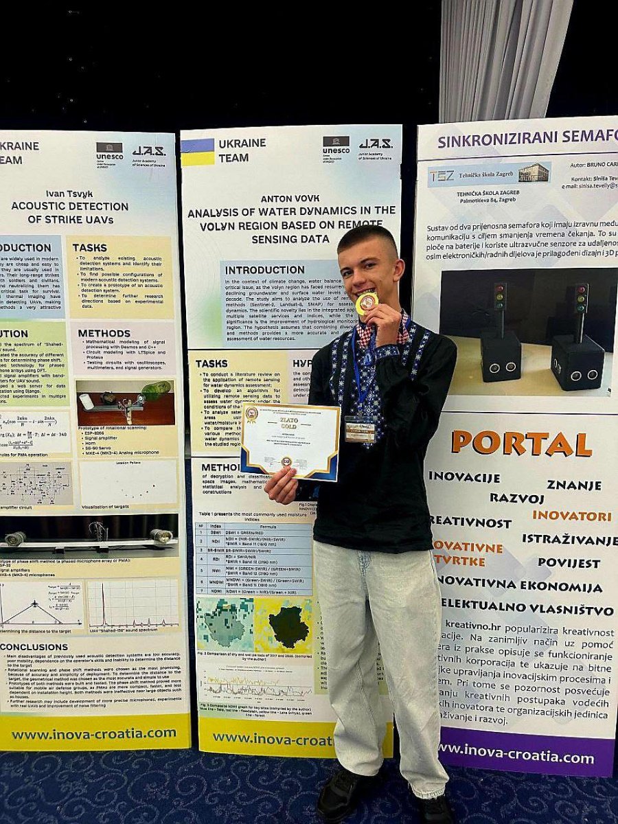 Учень Волинського наукового ліцею Волинської обласної ради Антон Вовк виборов золоту медаль на Міжнародному шоу винаходів INOVA 2025 у Загребі.