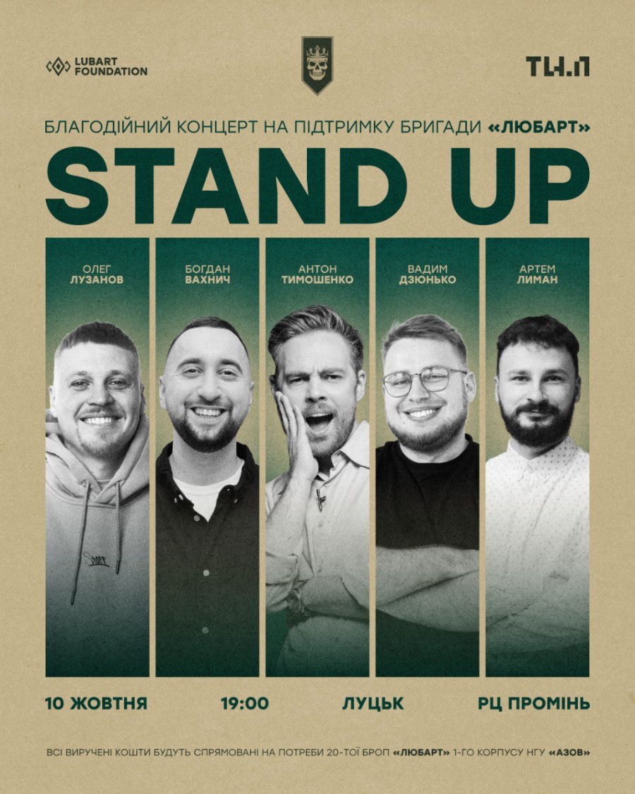 "Усі виступи наших стендап-артистів та ваша присутність на заході — це важливий внесок у посилення обороноздатності країни, адже усі виручені кошти будуть спрямовані на забезпечення потреб бригади «Любарт»", — зазначають організатори.