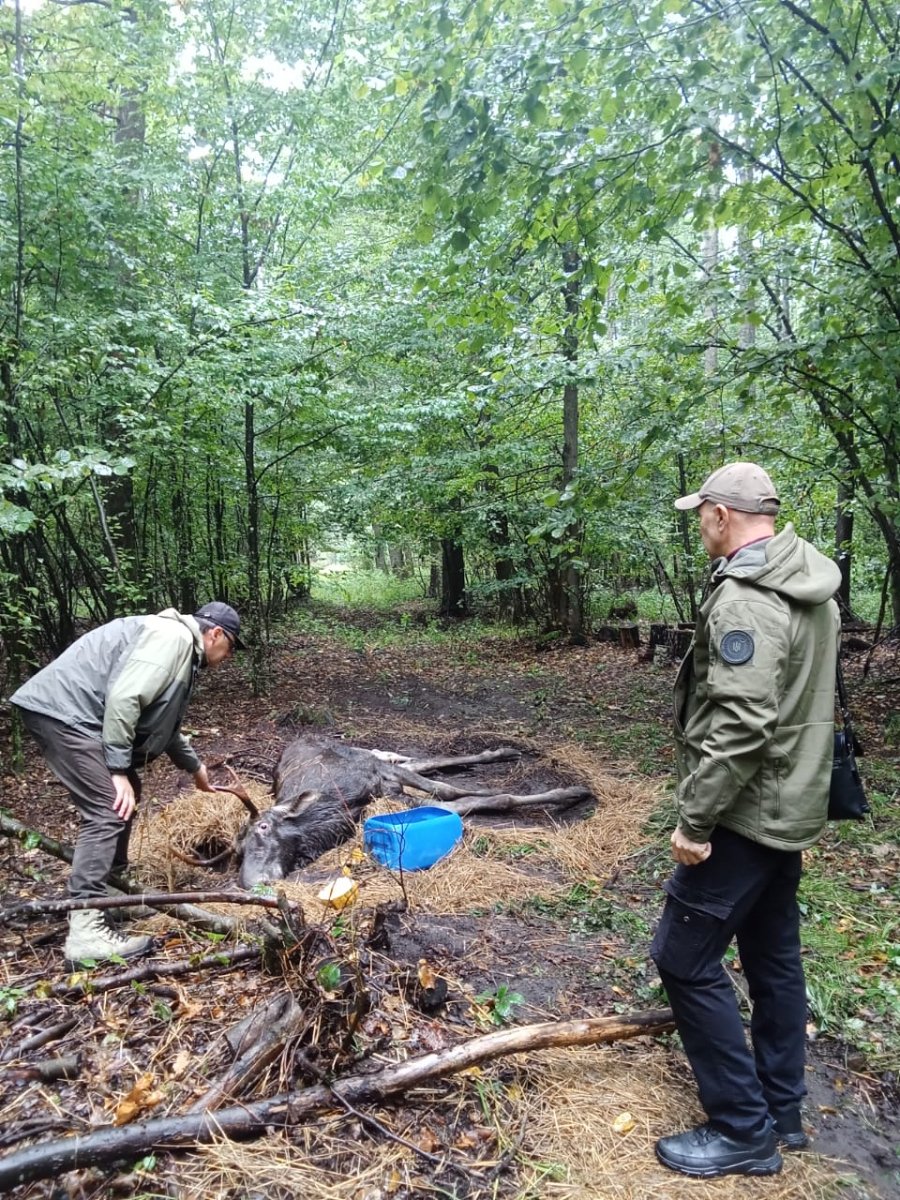 Побачивши повідомлення про лося у медіа, на місце виїхали державні інспектори з охорони навколишнього природного середовища. Там пояснили: у лісі врятували червонокнижного лося європейського.