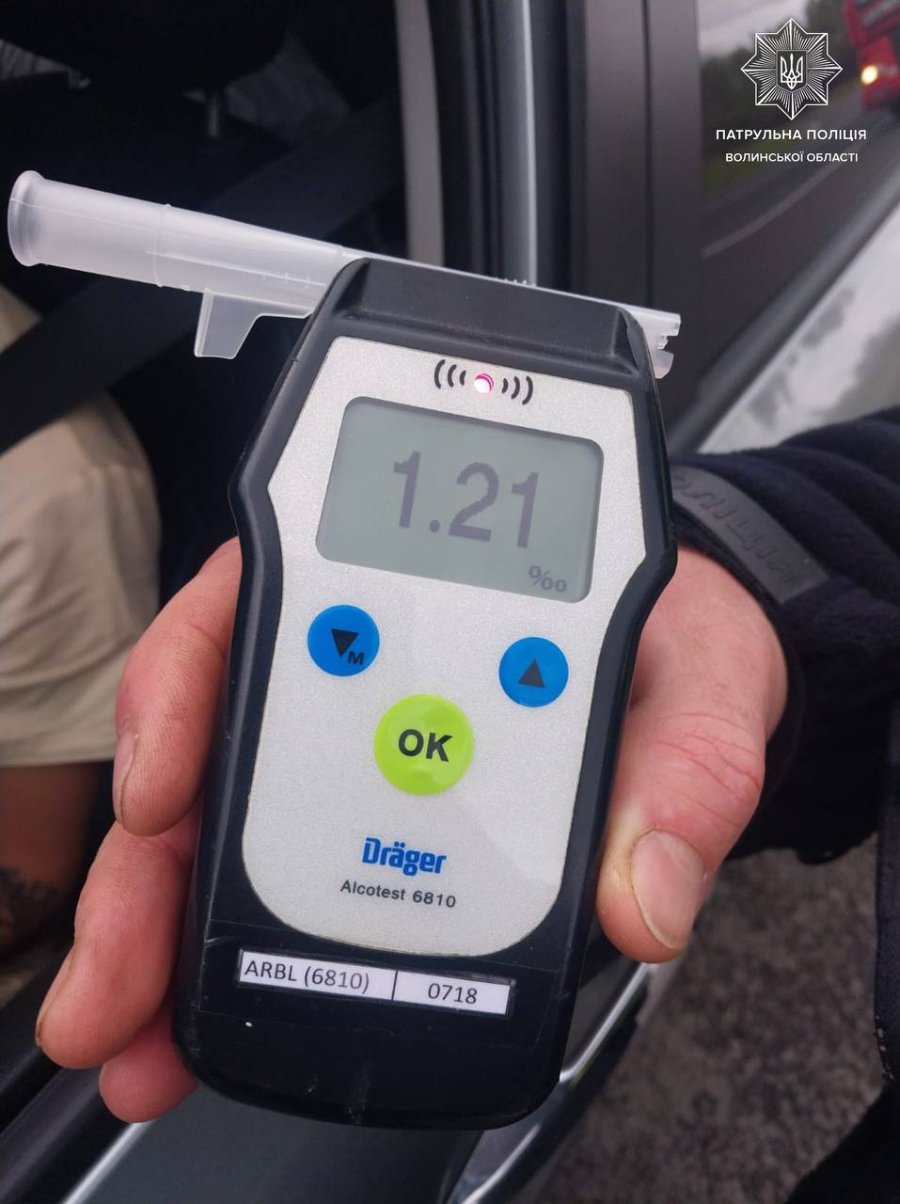 Під час спілкування з керманичкою інспектори виявили в неї ознаки алкогольного сп’яніння. Жінка погодилася пройти огляд на стан сп’яніння за допомогою приладу Драгер. Результат виявився позитивним — прилад зафіксував 1,21 проміле.