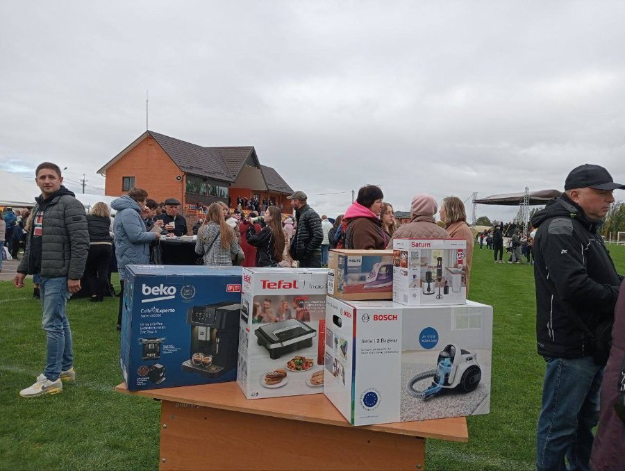 Не меншою цікавинкою стала благодійна лотерея з безліччю подарунків — кавомашиною, пилососом, праскою, грилем, блендером, сертифікатами на покупки в магазинах тощо.