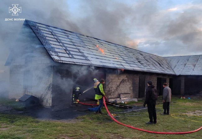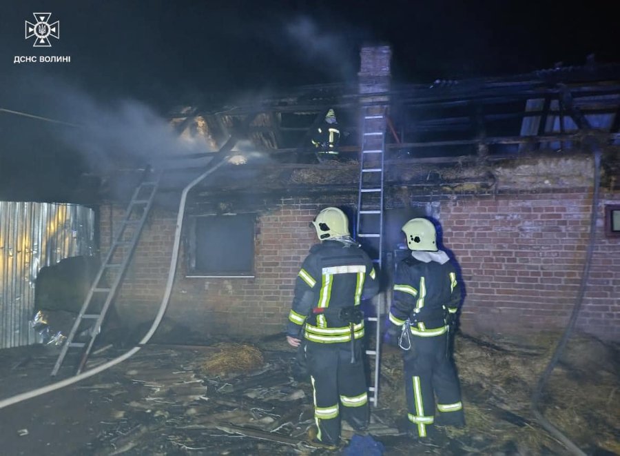 О 19:54 рятувальники знову отримали виклик — цього разу до села Волиця Горохівської громади Луцького району. Горіла господарська будівля.