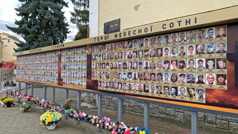 Фотостенд "Герої Небесної Сотні — Загинули за Єдність України" має довжину понад 22 метри і складається з трьох частин: "Небесна сотня", "Загинули за єдність України" та "Герої нескореної України". Наразі він містить понад 560 світлин захисників і цивільних громадян, які віддали своє життя за Україну.