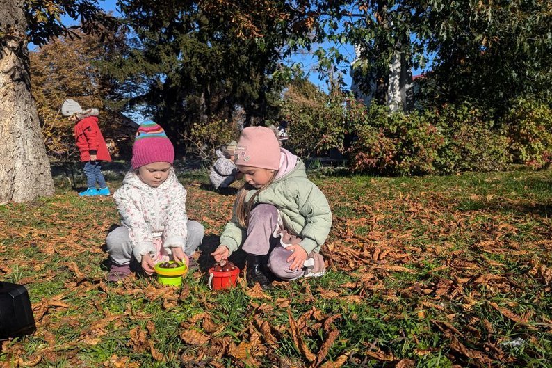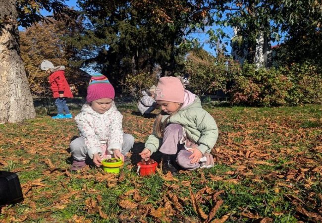 4-річки Вероніка та Яринка з Луцька збирали каштани в іграшкові відра. Хлопці Артем, Назар і Дмитро рахували, скільки каштанів вдалось зібрати.