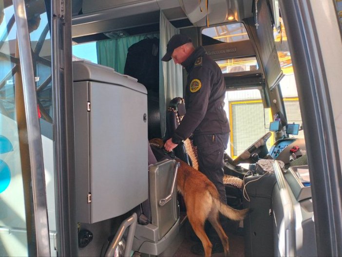 Зазвичай в автобусі є орієнтовно 30 пасажирів. Службовий пес завдяки нюху може швидко перевірити кожного. Якщо собака відреагувала на чийсь багаж — сумку чи валізу забирають на поглиблений огляд.