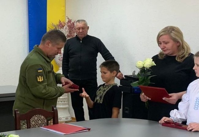 Нагороди з рук військових отримали діти Героїв — донька Олександра Твердохліба, Ангеліна, та син Олександра Старостіна, Павло.