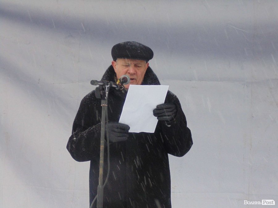 Щоб розказати про "злочинний режим", секретар Луцької міської ради Григорій Пустовіт вдався до історичних аналогій. "16 січня у стінах Верховної ради розтерзали українську демократію. В цей "чорний" четвер була оголошена по суті війна українському народові", - зазначив він.