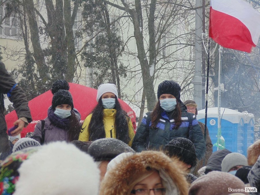 Крім традиційних виступів політиків та громадських активістів, ця акція відзначилася новим "трендом" - людьми у масках та імпровізованих шоломах. Маски були різні - від медичних і сталеварних до звичайних шарфів, що затуляють обличчя.