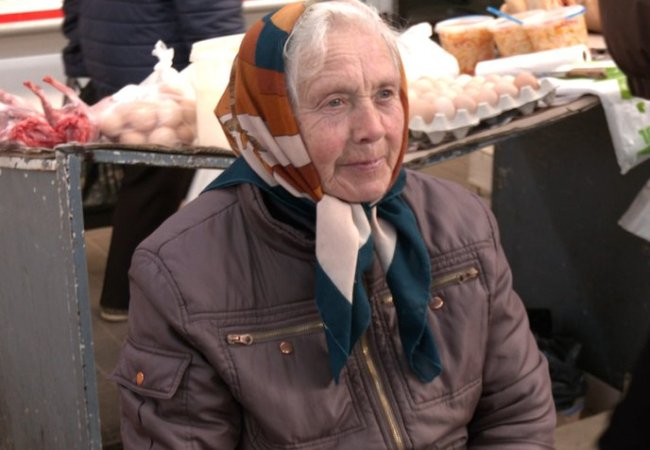 78-річна Галина Мусійчук з села Бокійма Рівненської області продає два сорти домашніх яблук. "Є по 35 яблука, а є по 40. Я думаю, що це не дорого. Якщо взяти мандарини, виноград, а воно все привозне, а це своє, натуральне", — ділиться жінка.
