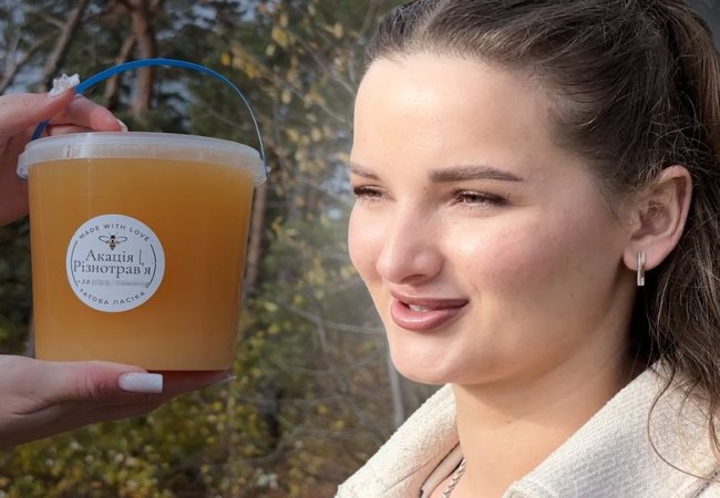 "У руках в мене мед — акація різнотрав’я. Цей мед викачується орієнтовно у червні-липні. Цього року він такий жовтуватий трішечки, але дуже смачний. Він майже не кристалізується, тобто, такий дуже кремоподібний і ніжненький", — каже Вікторія.