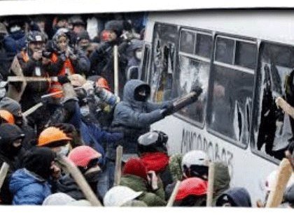 Коли ж люди почали революційні дії, пишуть на картинках, Тягнибок почав закликати припинити насилля.