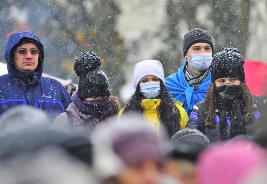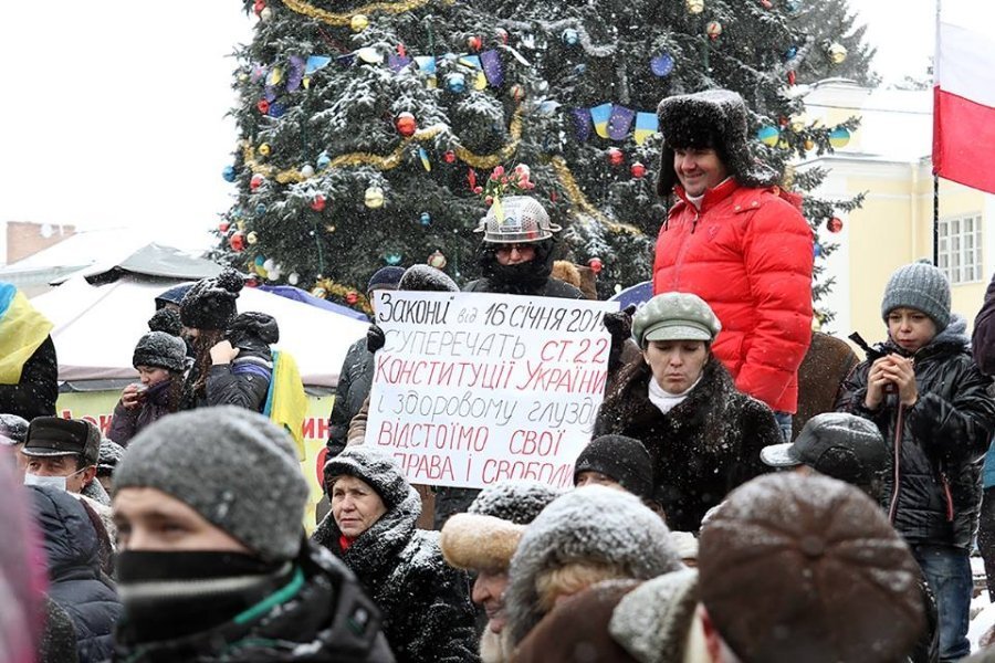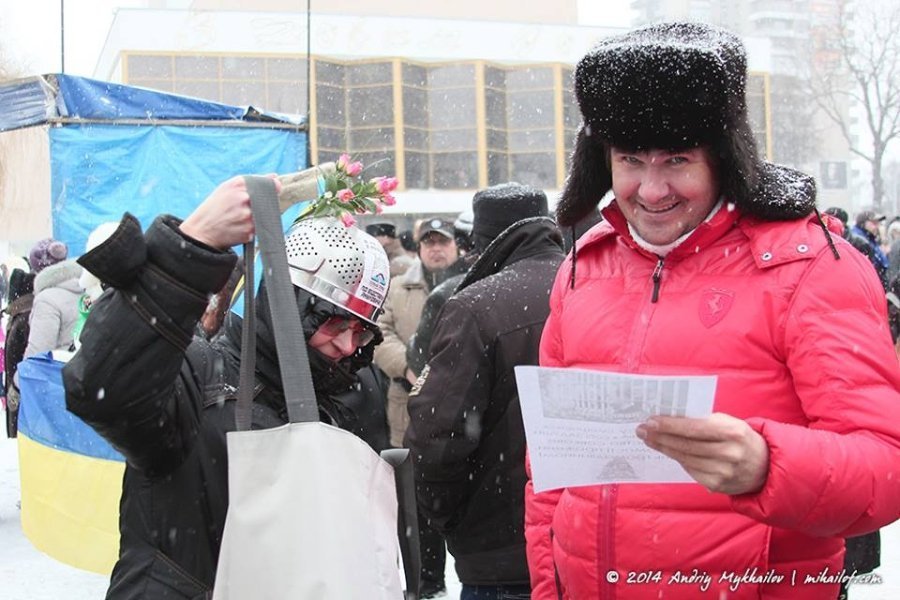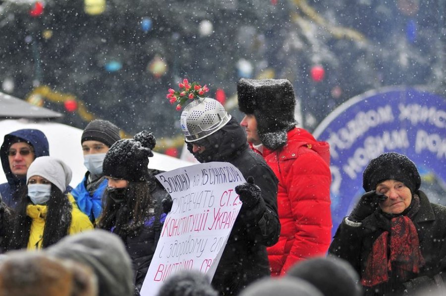 Також чимало людей на знак протесту проти скандальних законів прийшли на захід в шоломах, касках, масках. А дехто одягнув на голову каструлі та друшляки.
