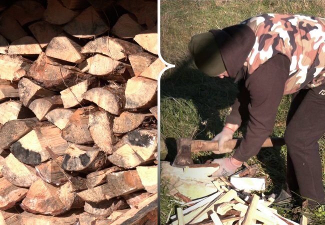 Староста Наталія Гоголюк каже, паливо зберігають у підсобних приміщеннях, видають його за потреби. Переселенці самостійно рубають дрова та опалюють приміщення.