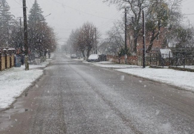 В обідню пору 21 листопада 2025 року дощ змінився на лапатий сніг, передає Район.Стара Вижівка.