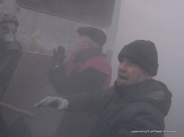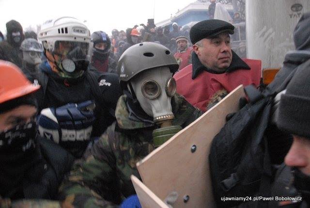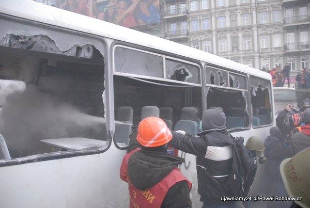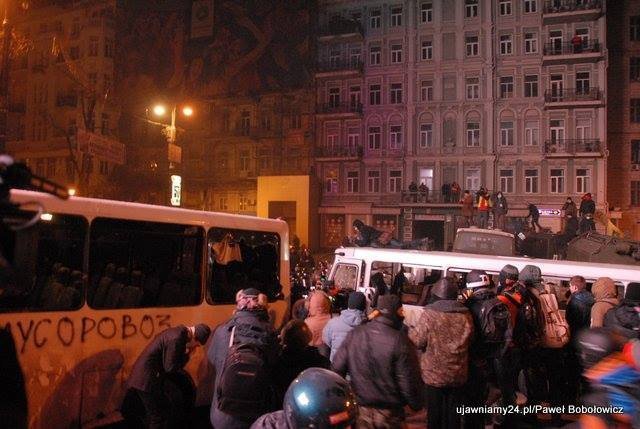 "Звернення лідерів опозиції на Народному Віче не переконали протестувальників. Кілька годин триває боротьба на міліцейській блокаді на вулиці Грушевського, що веде до Кабінету Міністрів та Верховної Ради. Кілька тисяч демонстрантів штурмують блокаду внутрішніх військ та беркуту. Палають міліцейські автобуси. Міліція використовує газові та світло-звукові гранати. Повертаюсь зараз на місце масових заворушень" - написав він 20 січня о 3:30.
