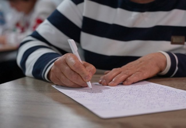 "Цей текст я вважаю складним, але він актуальний на цей час, — додає жінка. — Деякі слова були для мене незнайомі. Але я завжди була не байдужа до правопису, тому долучаюся до написання Радіодиктанту. Прикро, що зробила одну помилку, треба було довше подумати".