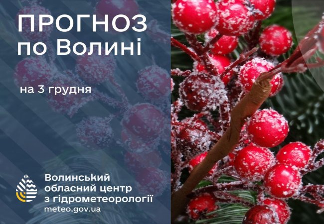 Волинський обласний центр з гідрометеорології опублікував прогноз погоди на 3 грудня.