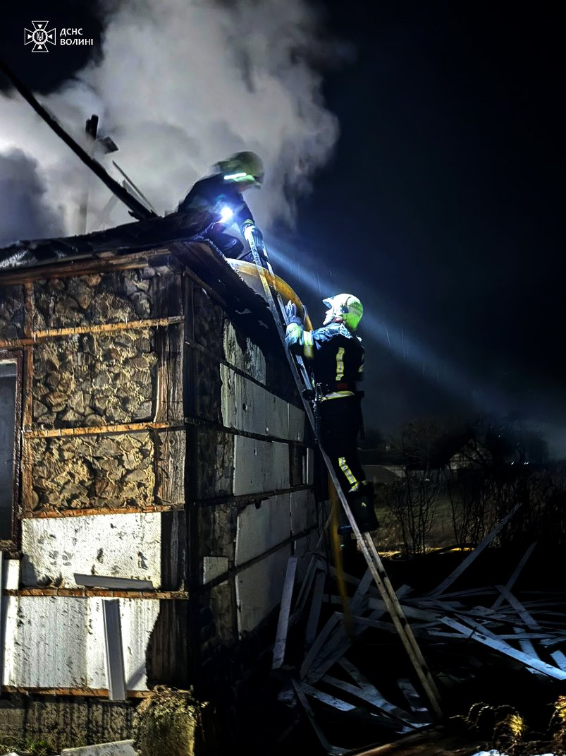 Учора, 2 грудня, увечері трапилася пожежа в селі Ставок Олицької громади — вогонь охопив покрівлю й перекриття дерев'яного житлового будинку. Повідомлення на лінію 101 надійшло о 19:24.