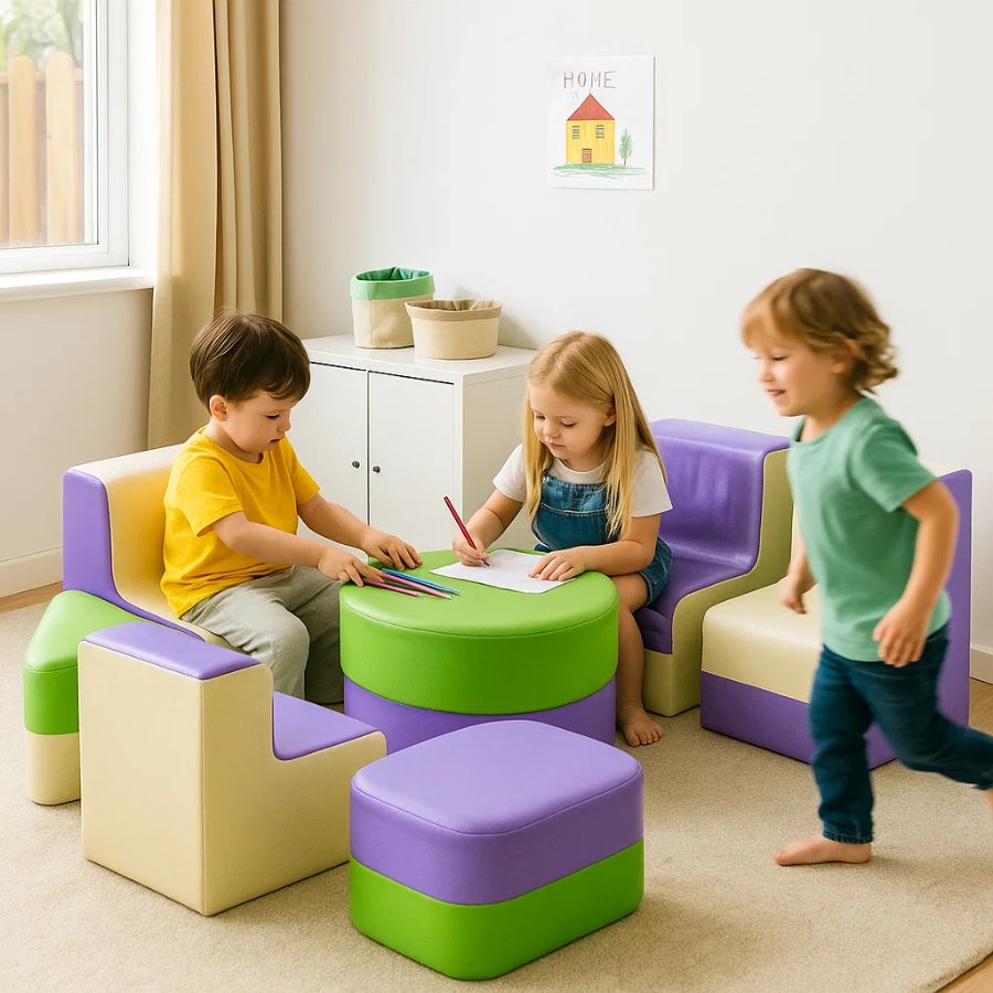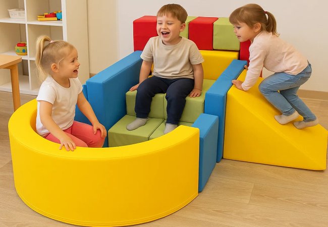 Саме тому м’які модулі — це не просто інвентар. Це середовище, у якому дитина вчиться довіряти собі.