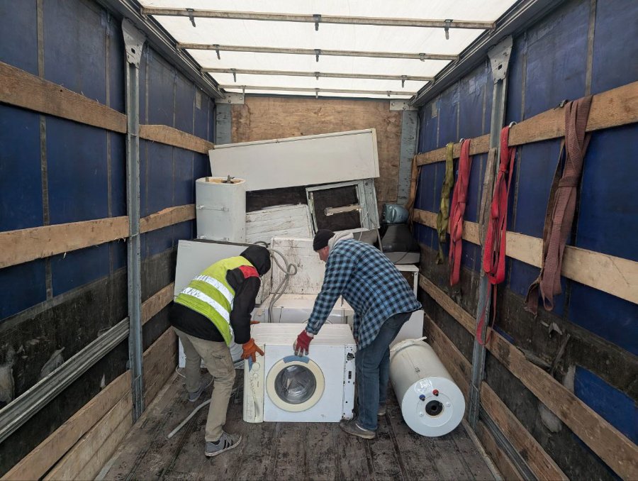 Загальна вага побутової техніки - майже 3 тонни. Вантаж відвантажили у АБМ-рециклінг — товариство, яке має офіційну ліцензію Міністерства захисту довкілля та природних ресурсів України.