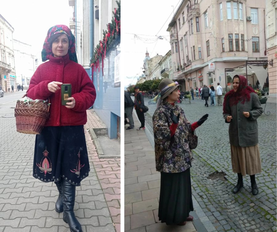 Вишита спідниця, барвиста хустка, плетений кошик - образ, який ніби зійшов зі старих листівок австро-угорських часів. Любов Шилюк - акторка Народного драматичного театру імені Г. Агєєва та заступниця директора Буковинського центру культури і мистецтва. Вона бере участь в авторському проєкті Ярослава Адамчука "Пригода по-чернівецьки", де минуле міста оживає через театральні образи.