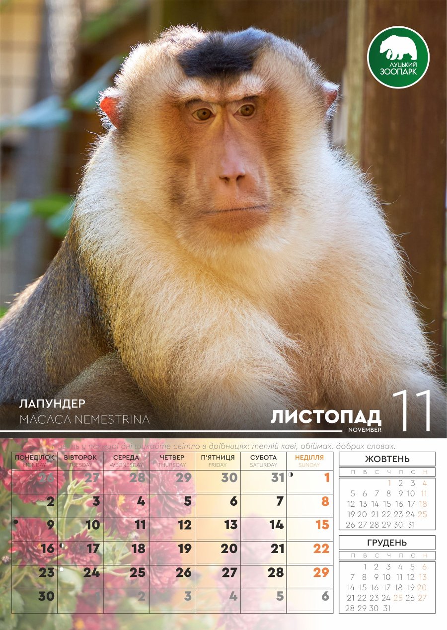 Луцький зоопарк випустив календар зі світлинами своїх підопічних. ФОТО