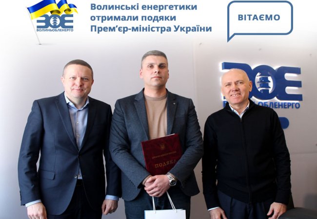 Волинські енергетики отримали подяки від прем’єр-міністра України.