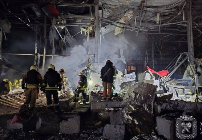 ДСНС вказує, що окупанти завдали масованого удару по території поштового термінала у передмісті Харкова. Сталися руйнації будівель та декілька осередків займання на загальній площі близько 500 м².
