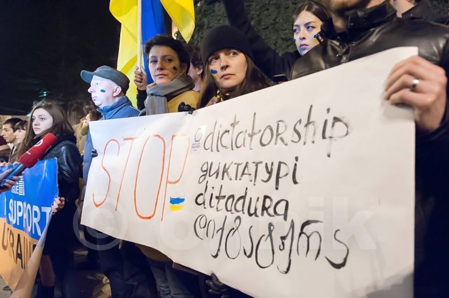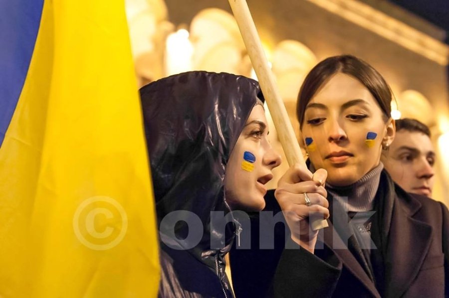 "Без будь-якої партійної символіки, без будь-якого політичного контексту, просто для вираження підтримки братнього народу. Акція була не дуже сильно пропіарена, зібралися через соцмережі. Сьогодні теж, вже біля посольства України, в 19:00 збираються на схожу акцію", - пише грузинський блогер cyxymu.