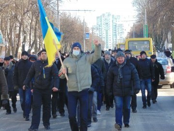 Після мітингу на Київському майдані Луцька його учасники вирішилися колоною повернутися у центр міста.