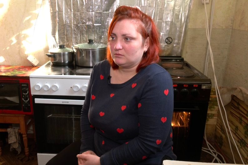 "Летіло, вибухало, ми в кут забігли, нам скло по ногам і чоловік казав – Настя, давай виїжджаємо. Ми в двір боялись випустить дітей, там гради летять. Пил і газ пішов бо там в труби газові попали. Дирки в криші а що ж толку сидіть з дітьми в тій хаті. Холод. Води немає, батерею зірвало", — розповідає жінка.