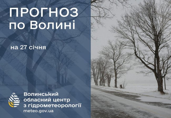 Волинський обласний центр з гідрометеорології опублікував прогноз погоди на 27 січня.
