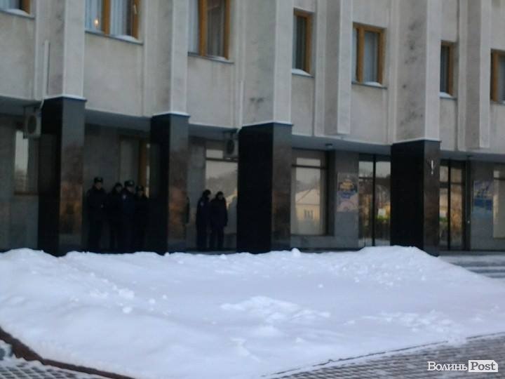 У будівлі Волинської ОДА ще з ночі почали готуватися до посиленої оборони.