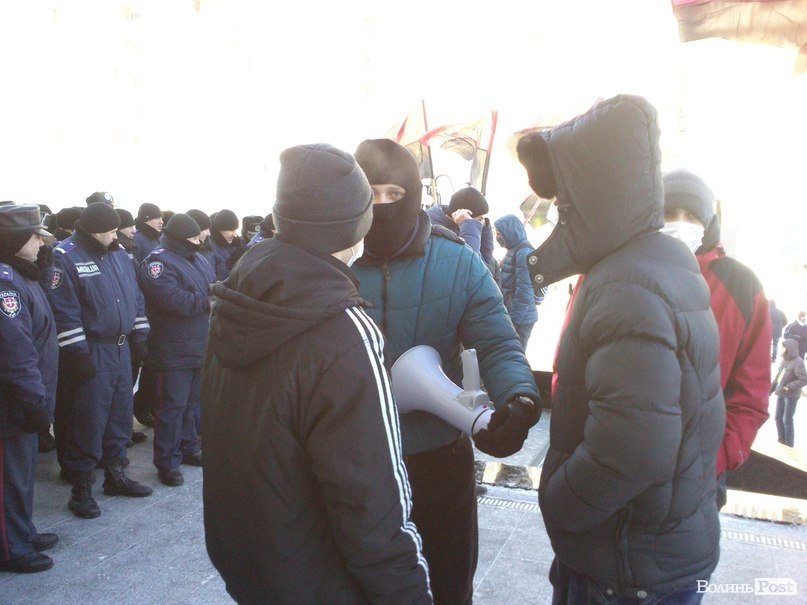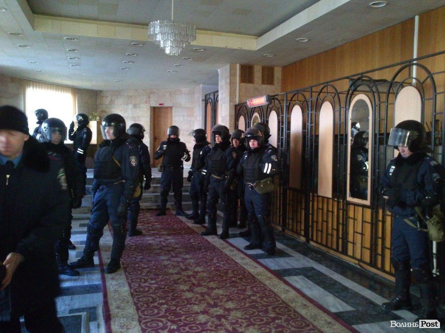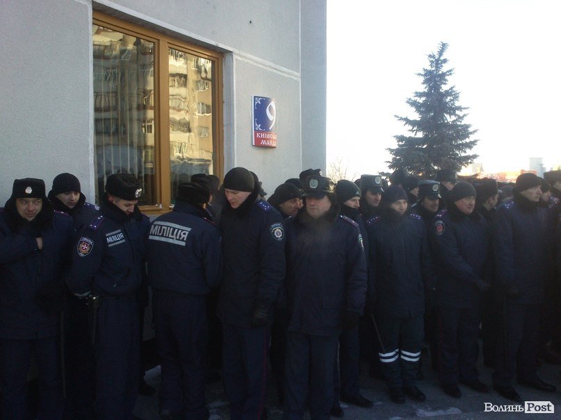 Міліція вишикувалася біля центрального входу - ДУЖЕ багато міліції, каже репортер ВолиньPost.