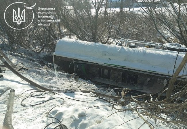 На Волині перекинувся бензовоз: нафтопродукти потрапили у рів, що впадає в річку Лютиця