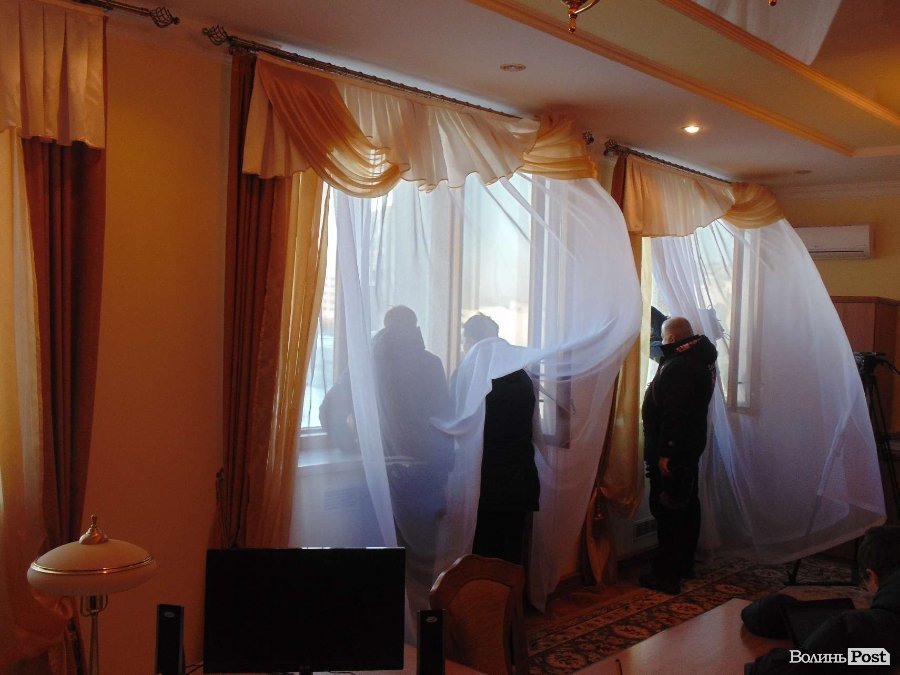 У приміщенні ОДА - начальник СБУ Волині Володимир Мельникович, прокурор області Андрій Парака і начальник ГУ Міндоходів Волині Ігор Сінгаєвський